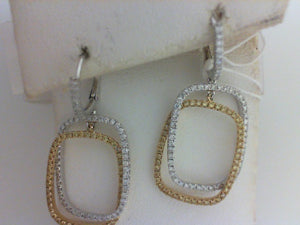 18KT W/YG .50CT 96-YELDIA / .61CT 122-RD DIA DANGLE EARRINGS