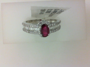 18KT WG .48CT RUBY W 50 RD DIA .31CTTW/ 22 BAG DIA .38CTTW