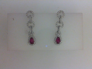 18KT WG .54CTTW RUBY W .32CTTW 112 RD DIA DANGLE EARRINGS