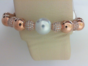18KT RG 1.05CTTW 168 RD DIA W 10.9MM WHITE PEARL BANGLE BRACELET
