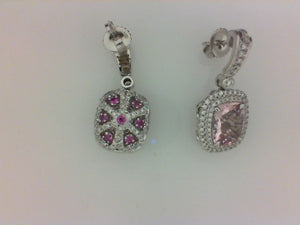 18KT PASTEL EARRINGS 294 RD DIA 1.30CTTW HI-VS2-SI1 14 PNK SAPH .55CTTW 2 10X8MM CUS MORGANITE 4.69CTTW