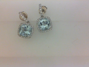 18KT 68 RD DIA .49CTTW WITH 2 8X8 AQUA MARINE 3.93CTTW EARRINGS