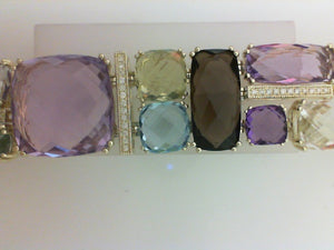 14KT YG 72 RD DIA .38CTTW 21 MIXED COLOR STONE BRACELET