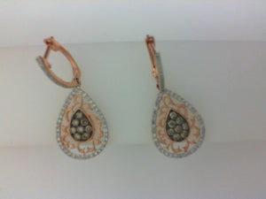 14KT RG 88 RD DIA .37CTTW/ 220 BRWN DIA 1.66CTTW EARRINGS