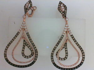 14KT RG 2.35CTTW DIA DANGLE EARRINGS 126 .60CTTW W 26 BLK DIA .38CTTW 112 BRN DIA 1.37CTTW