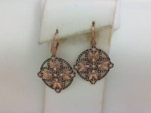 14KT RG .27CTTW 102 RD DIA/ .34CTTW BRWN 16 RD DIA DANGLE EARRINGS