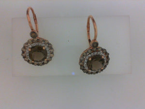 14KT RG 2.27CTTW SMOKEY TOPAZ & .16CTTW 40 RD DIA/.81CT BRN DIA EARRINGS