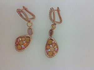 14KT RG .33CTTW RD DIA W 3.09CTTW COLORED STONE DANGLE EARRINGS
