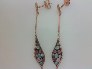 14KT RG .21CTTW RD DIA W 2.90CTTW COLORED STONE DANGLE EARRINGS
