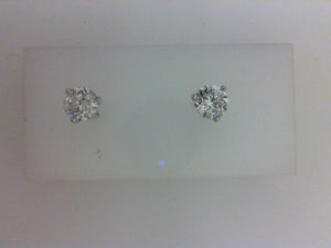 14K WG .69CTW "A" RD 3 PRONG DIA STUD EARRINGS
