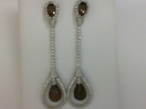 18KT WG TEAR DROP BRIO SMOKEY QRT W DIA DROP DANGLE EARRING