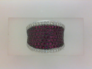 18KT WG PAVE SADDLE RG WITH 44 RD DIA .41CTTW &111 RD RUBY 1.78CTTW