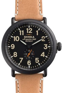 RUNWELL 47MM RD GENTS SANDBLAST CASE BLK DIAL 24MM NATURAL DUBLIN STRAP WITH BUCKLE