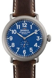 RUNWELL 47MM AA SANBLAST PLATING BLUE DIAL 24MM DK COFEE LEATHER STRAP