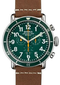 RUNWELL SPORT 48MM SS SHINEY PLATING GREEN DIAL 24MM BROWN STRAP