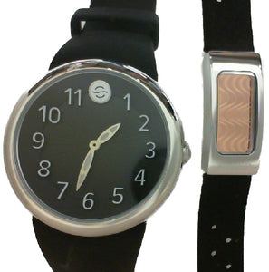 PHILIP STEIN DAY NIGHT TIME KIT BLK DIAL WATCH WITH WH #'S BLK STRAP SLEEP BRACELET